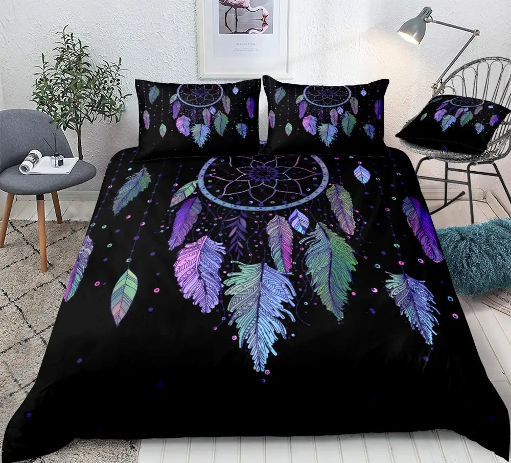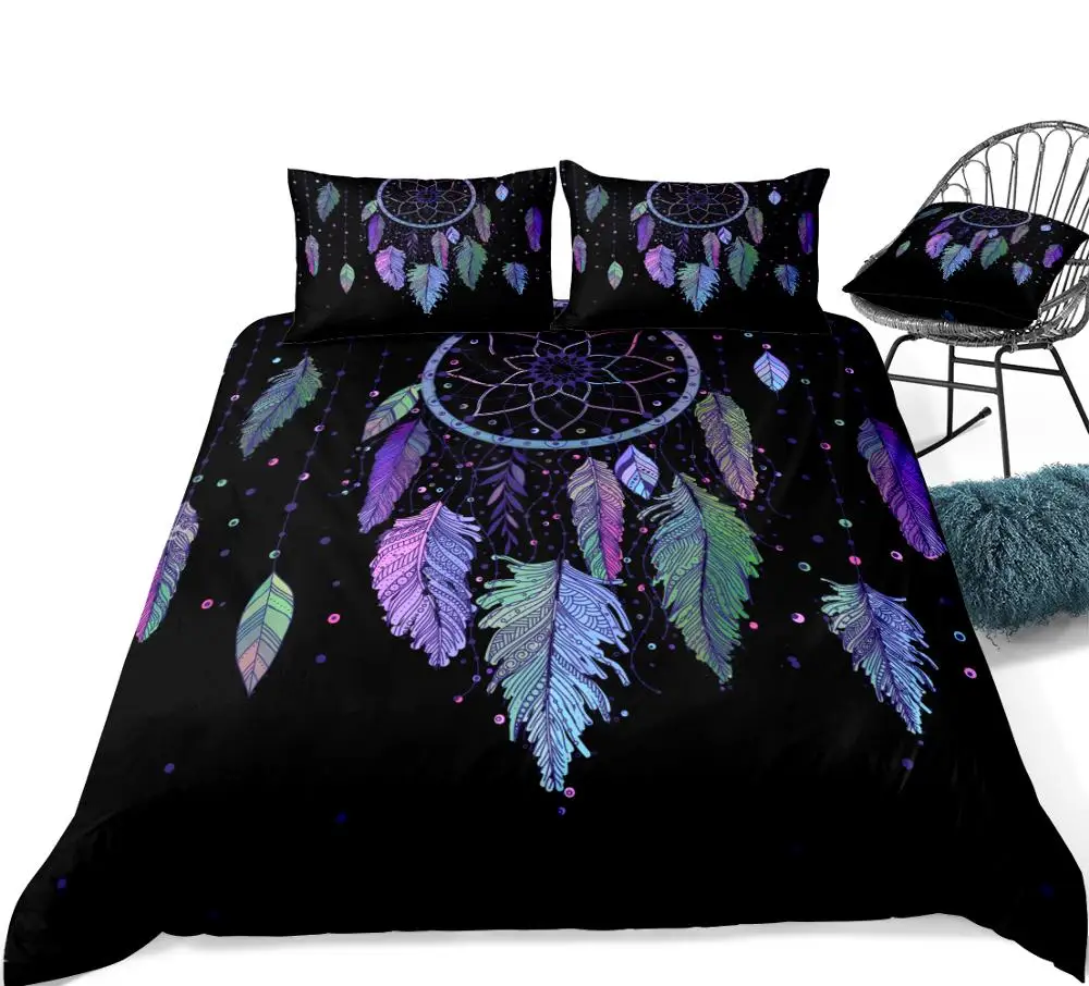 | 3 Pieces Dream Catcher Bedding Colorful Vibrant Feathers Bed Set Black Duvet Cover Set Boho Mandala Quilt Cover Queen Dropship |
