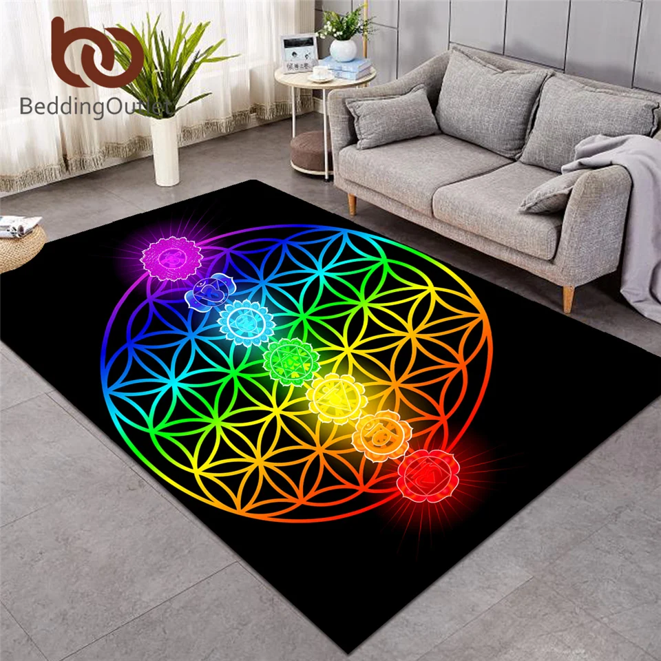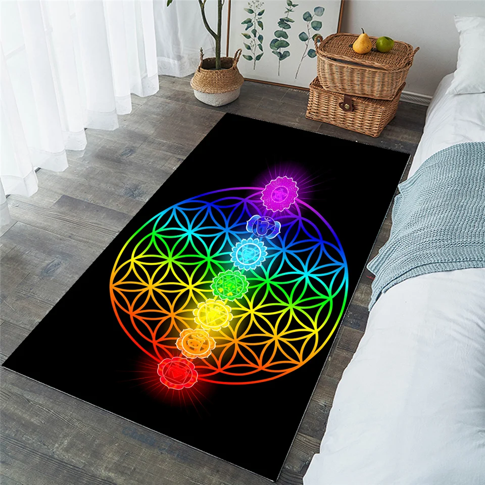 | BeddingOutlet Chakra Carpets for Living Room Zen Theme Rectangle Area Rug Colorful tapis Flower of Life Geometric Floor Mat Hot |