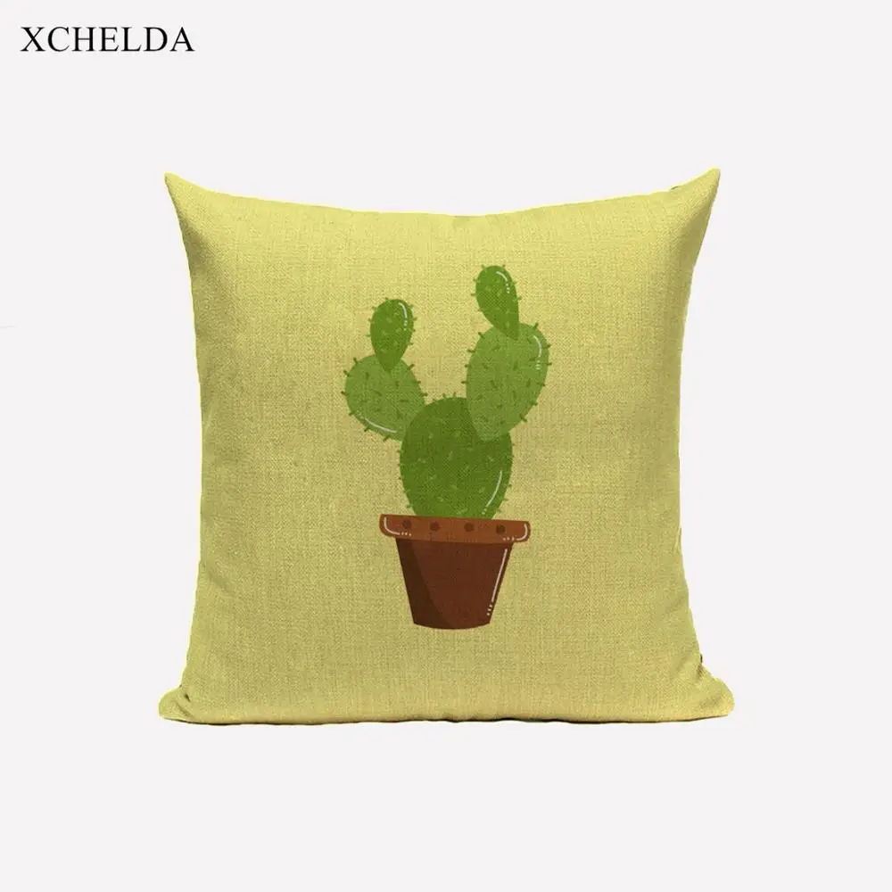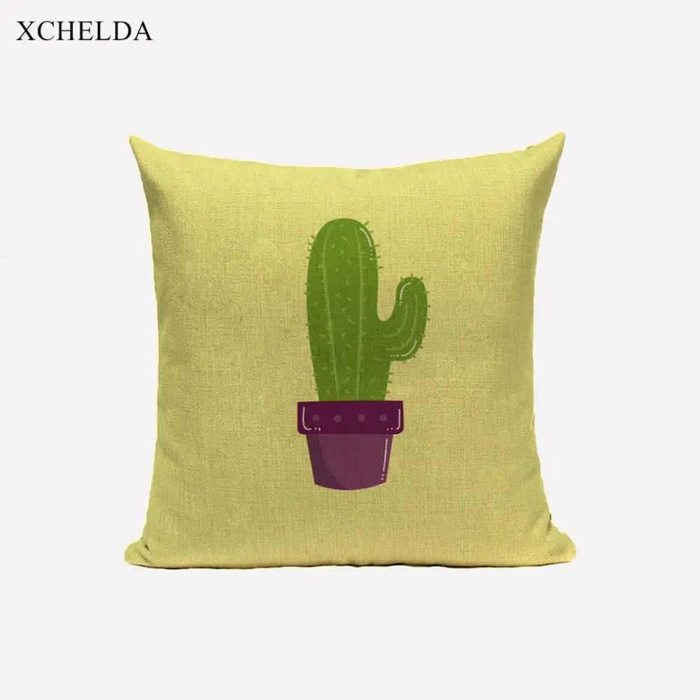 | Linen Cushion Cover Yellow Cut Tropical Cartoon Cactus Pattern 45*45 Home Decorative Pillow Case Pillowcase for Sofa Car Seat |