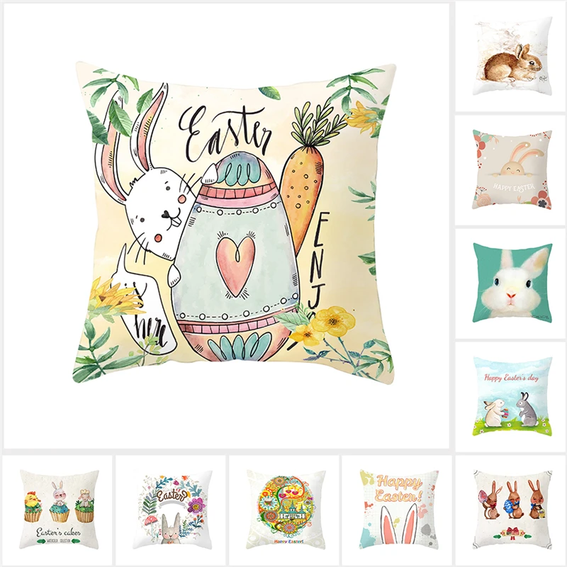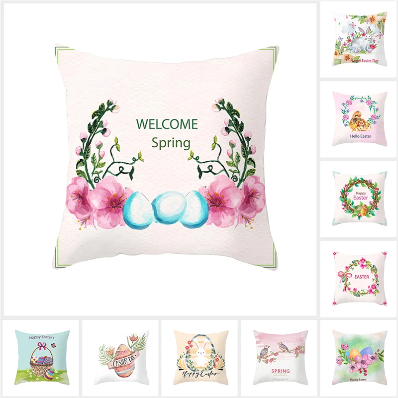| TTLIFE Spring Cushion Cover Easter Home Decor Pillows Happy Easter Bunny Rabbit Eggs Print Sofa Throw Pillow Cases for Car Sofa |