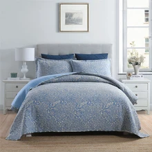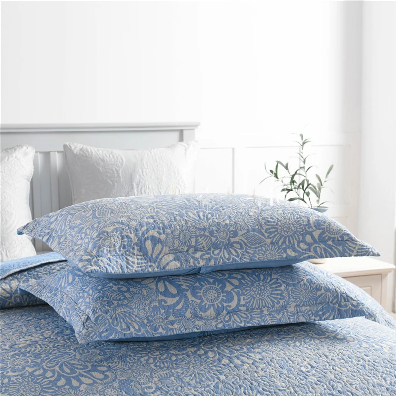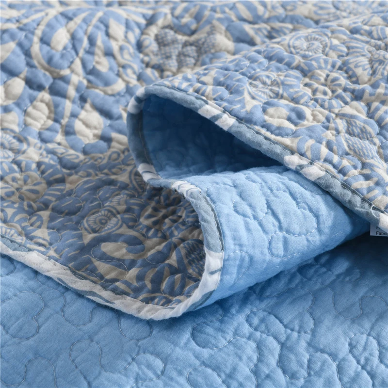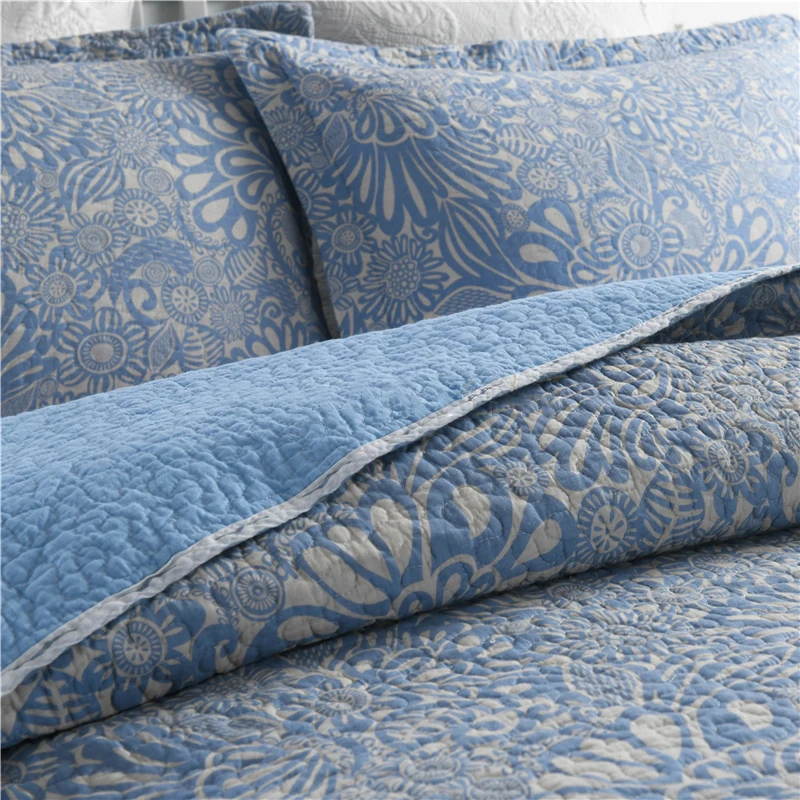 | CHAUSUB Blue Printed Cotton Quilt Set 3-piece Cotton Quilts Quilted Bedspread Bed Cover Pillowcase Queen Size Coverlet Sets |