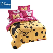 | Disney Mickey Minnie mouse Cartoon Bedding Set Black wave point Full queen Single Size Children Duvet Cover Pillow Cases hot |