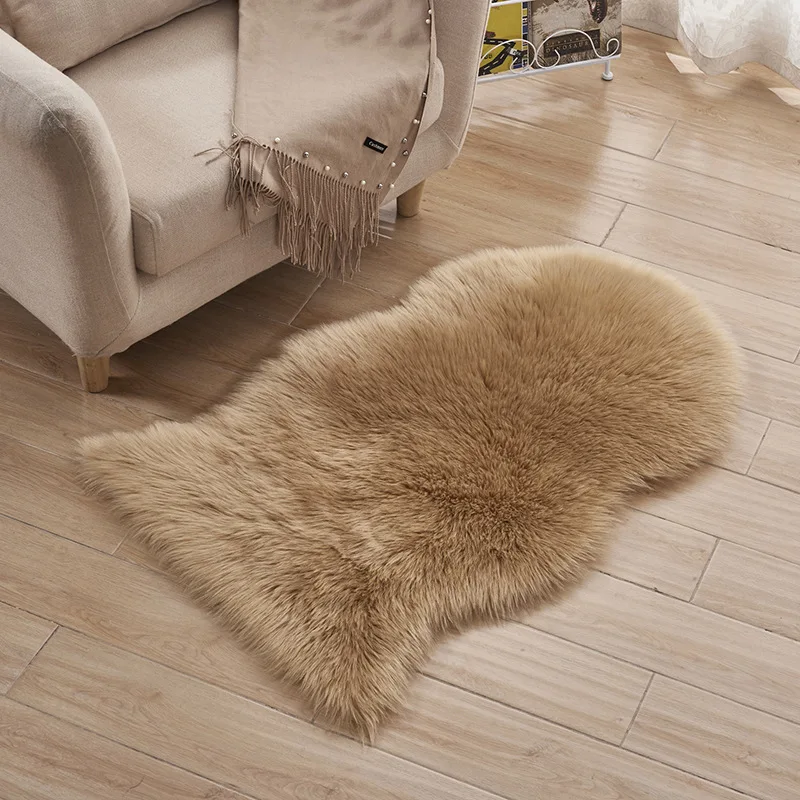 | Irregular Long Plush Area Rug Carpets Living Room Faux Fur Carpet Artificial Wool Sheepskin Shaggy Rugs Floor Mat for Bedroom |