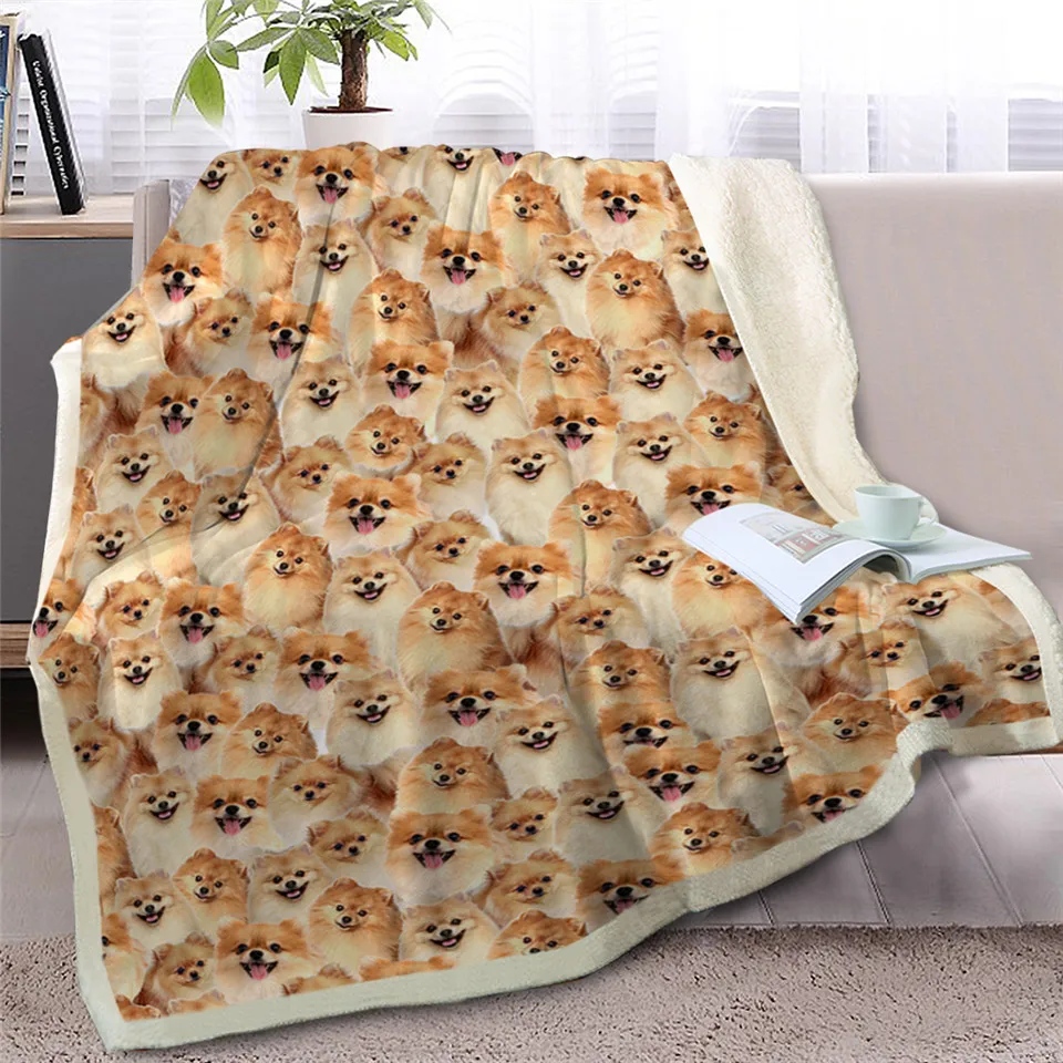 | BlessLiving Golden Pomeranian Sherpa Blanket on Beds Dog Collection Throw Blanket for Kids Animal Dog Soft Bedspreads manta |