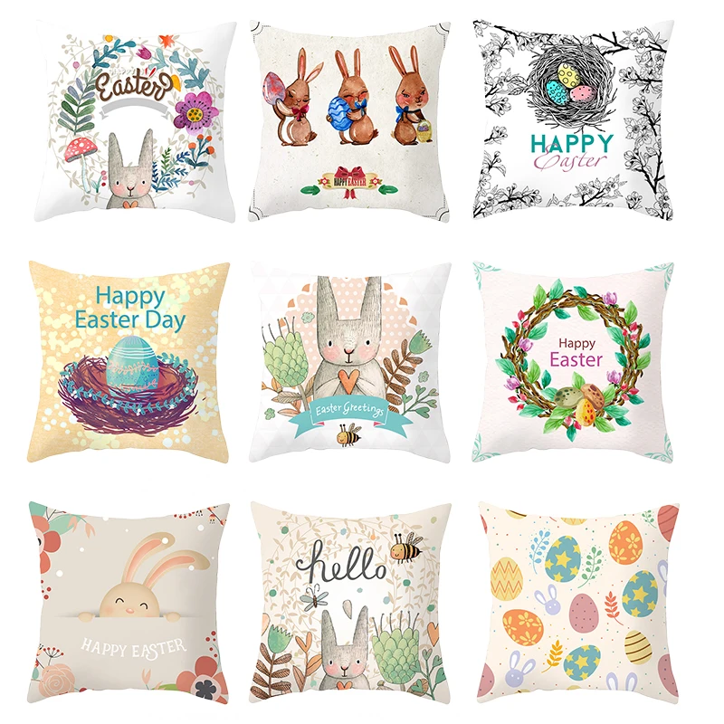 | Cartoon Easter Egg Rabiit Cushion Cover Bunny Print Throw Pillow Cover Sofa Cushion Case Home Easter Decor Polyester Pillowcase |