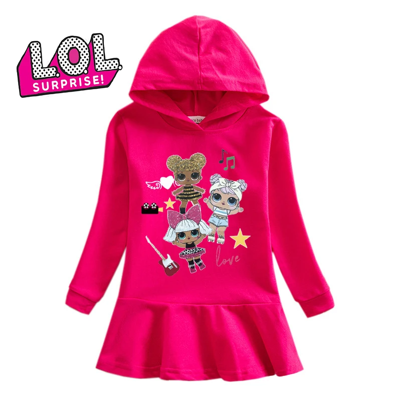 Best Price Comparison With Original LOL Surprise Dolls New Sweet and Cute Girls Hooded Sweater Dress Lol Cotton Fabric Casual Dress Gifts for Girls HT07