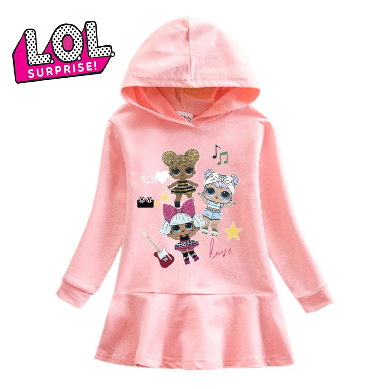 Original LOL Surprise Dolls New Sweet and Cute Girls Hooded Sweater Dress Lol Cotton Fabric Casual Dress Gifts for Girls HT07