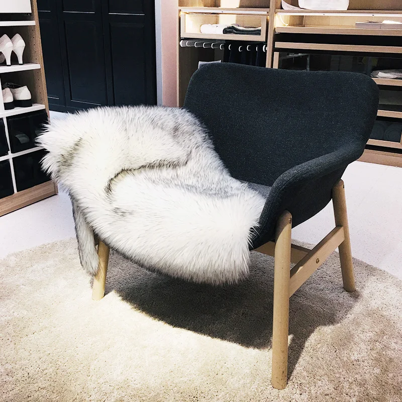 | Soft Artificial Sheepskin Chair Cover Warm Hairy Carpet Seat Pad Plain Skin Fur Plain Fluffy Area Rugs Washable Bedroom Faux Mat |