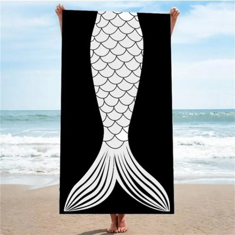 | 3D Pink Black Mermaid tail Print Beach Towel for Women Girl Soft Absorbent Bathroom Bath Towels Adults Shower Swimming Towels |