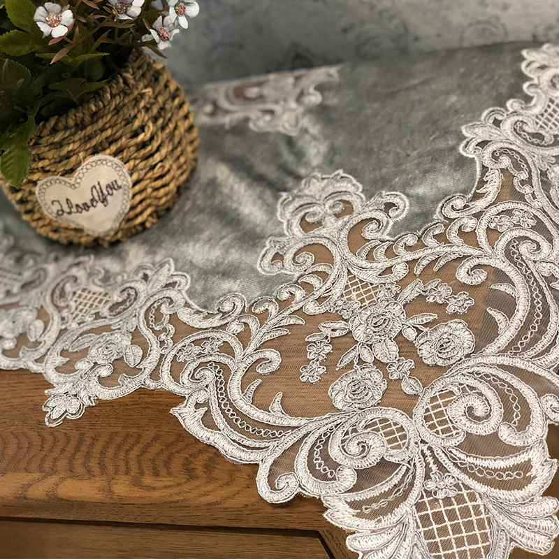 Luxury European Velvet Lace Embroidery Tablecloths Furniture Cover Cloth Balcony Coffee Round Table Mat Christmas Wedding Tapete