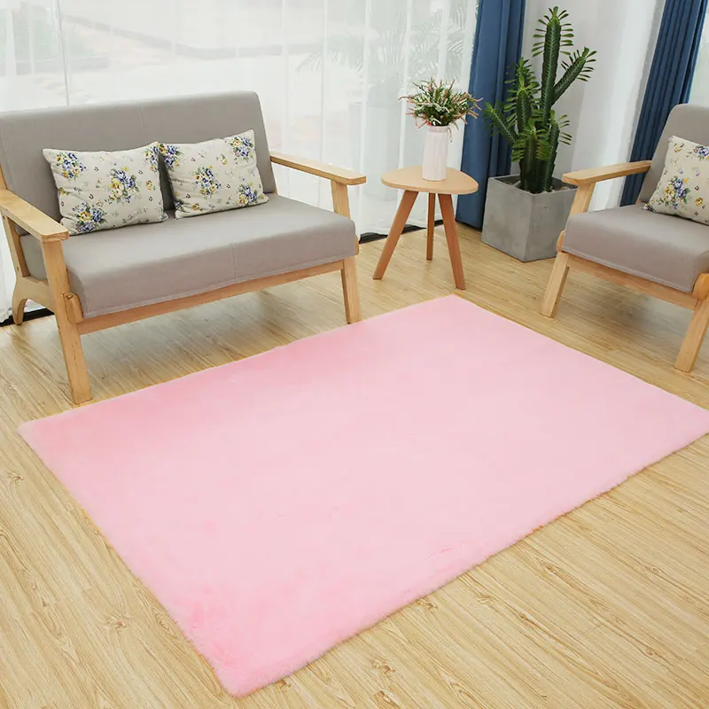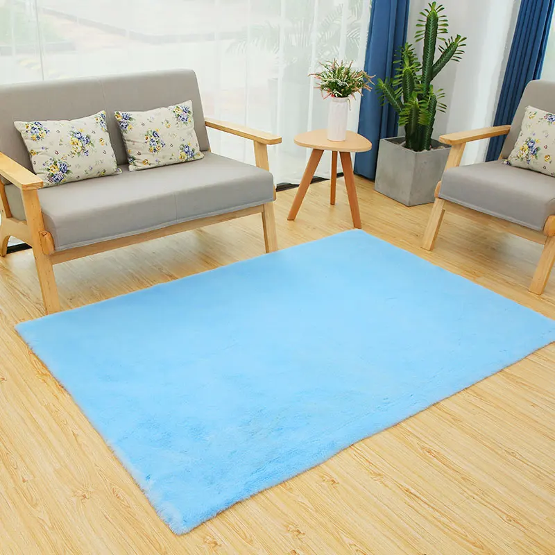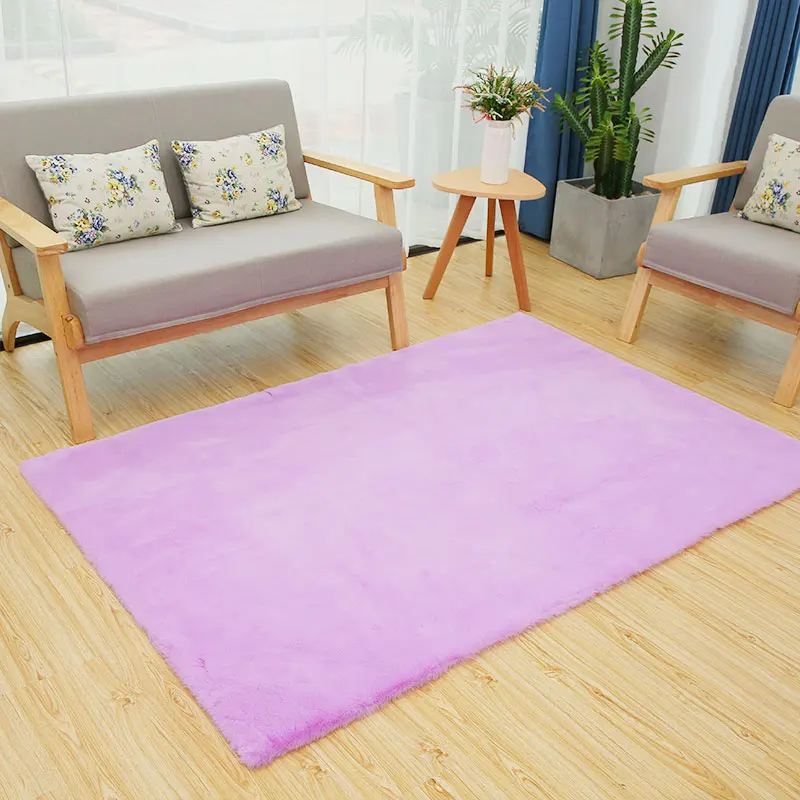 Rabbit fur rectangular rug large carpet next to the bed in the living room comfortable soft plush floor mat for adults children