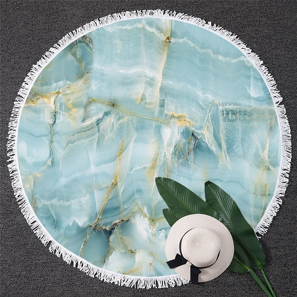 | BlessLiving Marble Large Round Beach Towel for Adult Quicksand Microfiber Bath Towel Rock Stone Sunblock Blanket Cover Dropship |